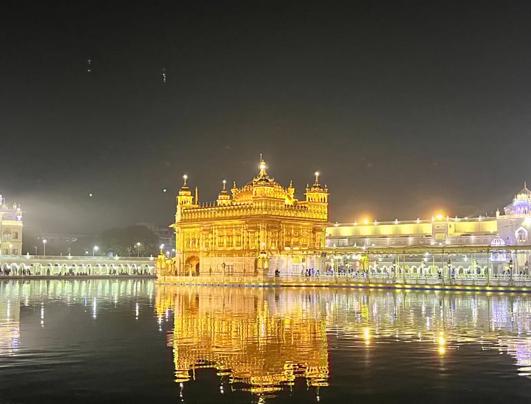 The Golden Temple, or Sri Harmandir Sahib, located in Amritsar, Punjab, is the holiest shrine in Sikhism, renowned for its stunning gold-covered architecture and spiritual serenity.
